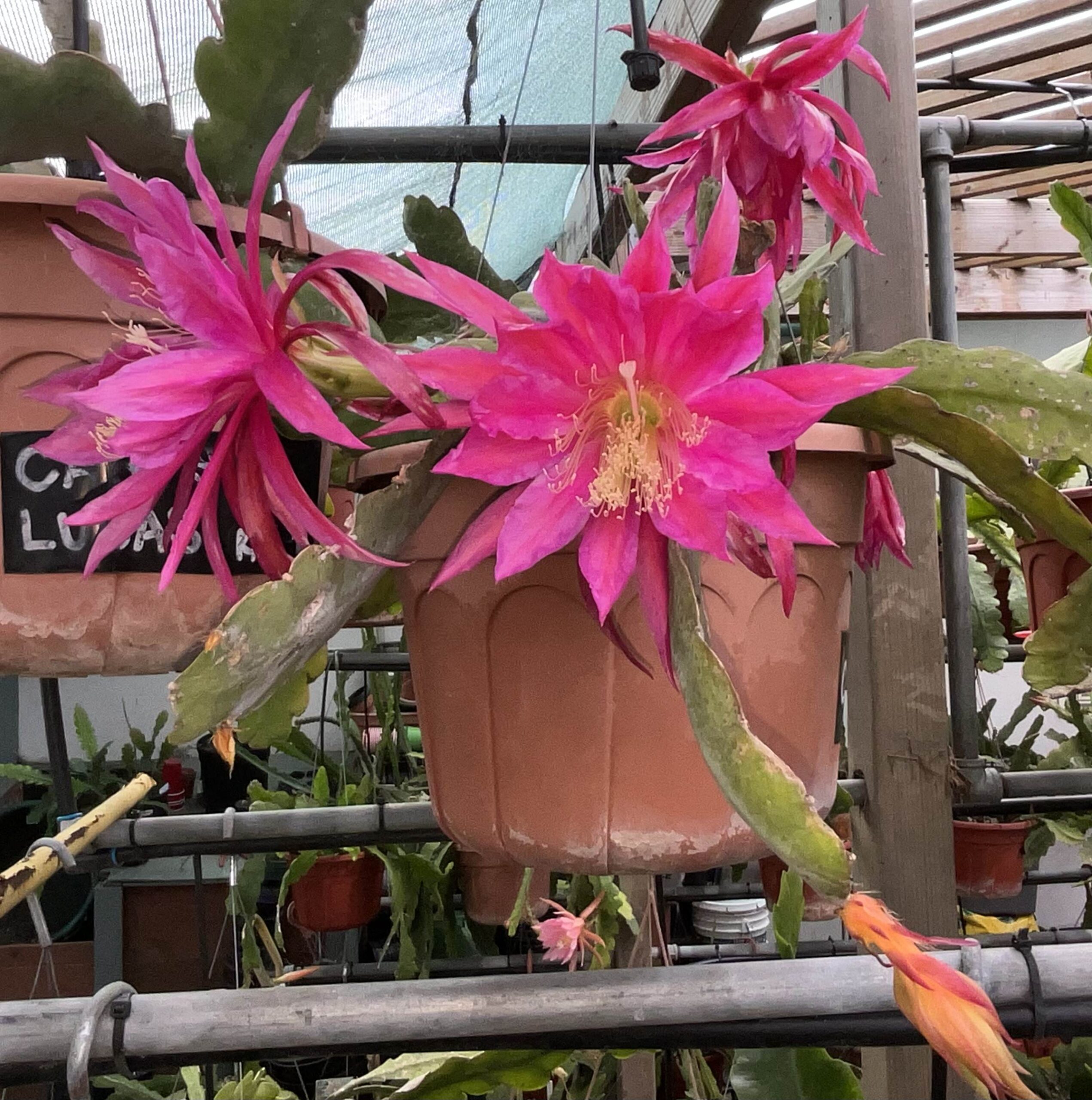 Description: 1988. FRE. Red with Fuchsia-purple edge. Out petals red. Overlapping, cup and saucer form. Thick, flat growth. “Malcho’s Beauty” ex nat.