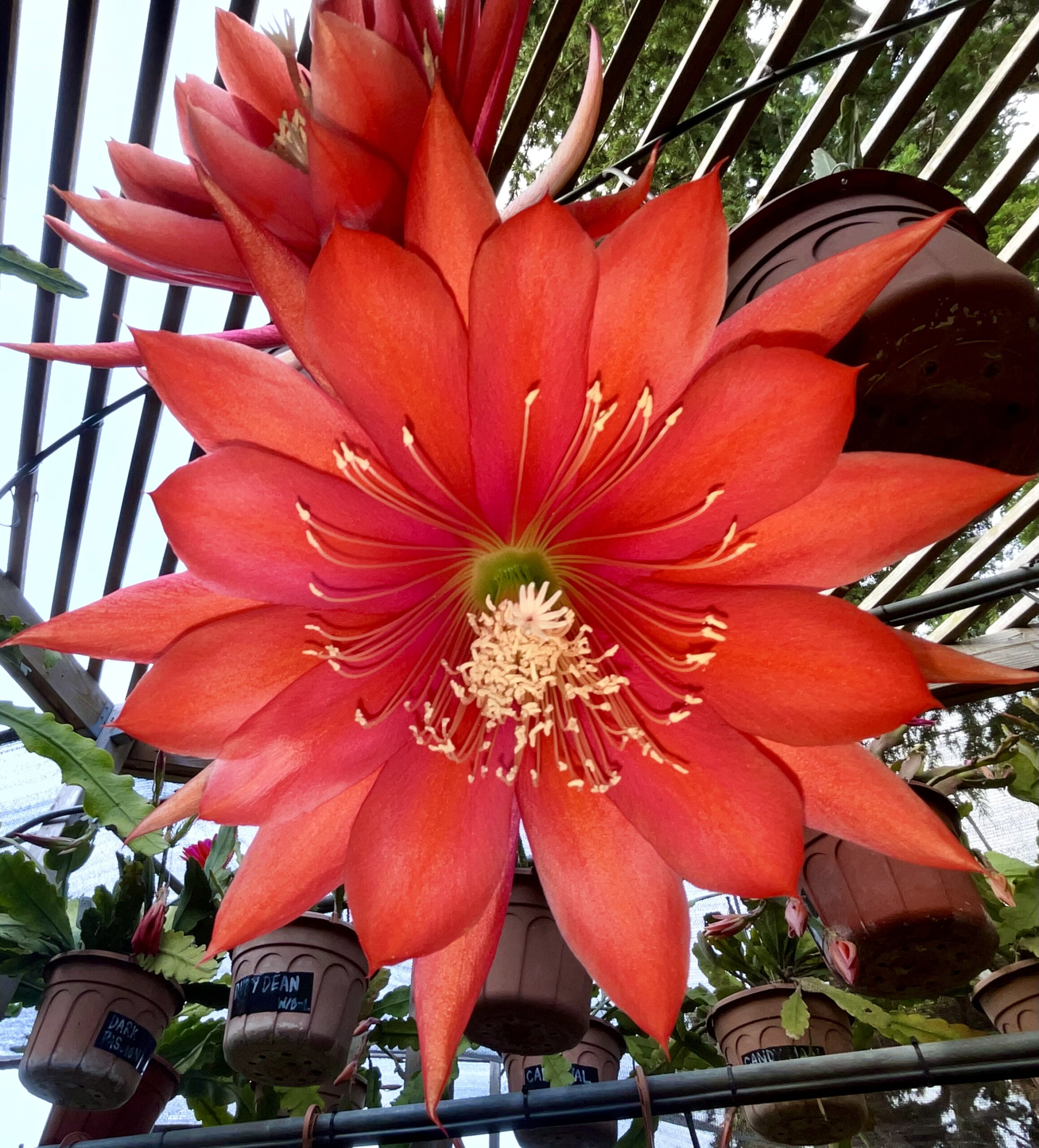 Description: Orange with lavender glow. Outer petals red. Opens wide. Upright, 3-angled growth. (Aka german #5).