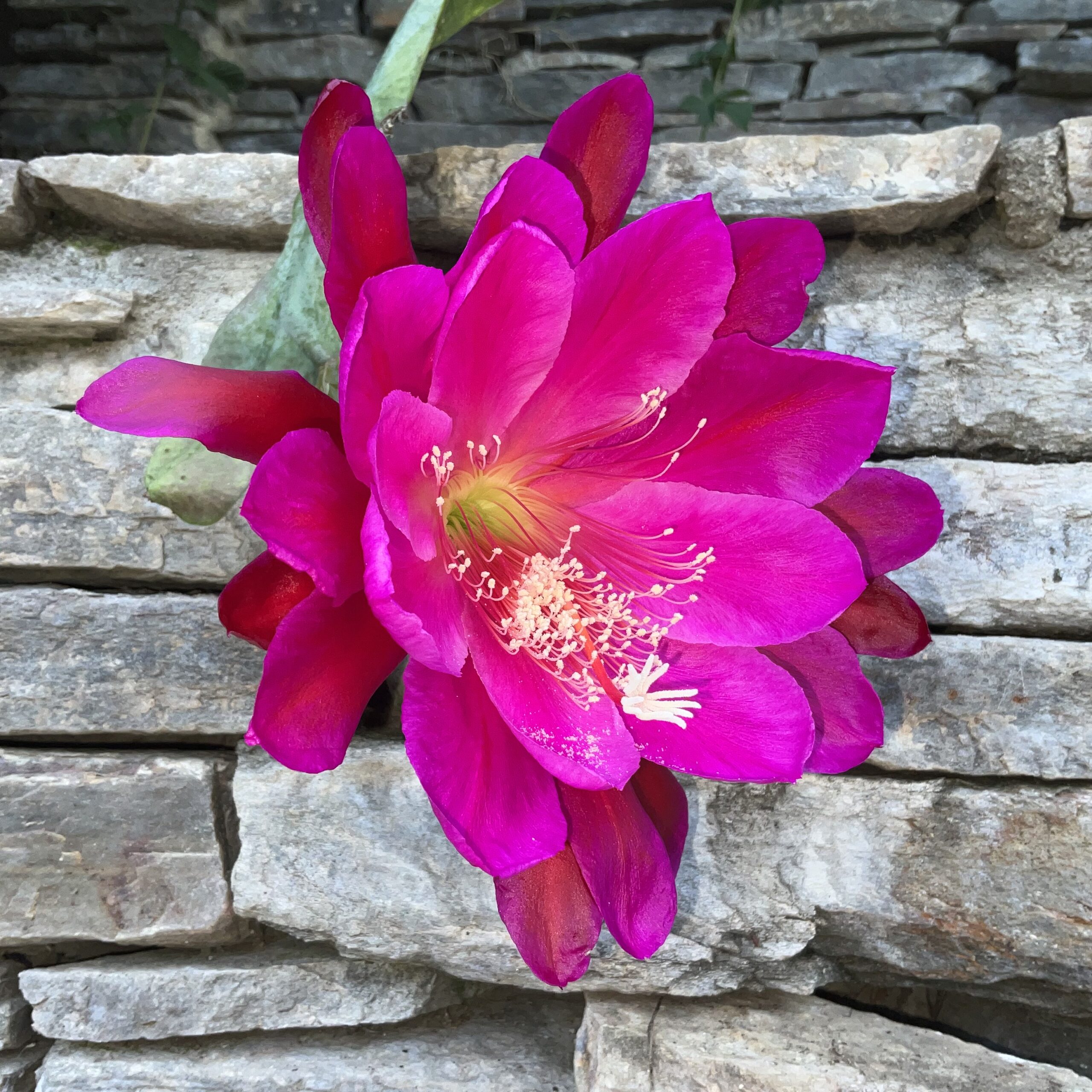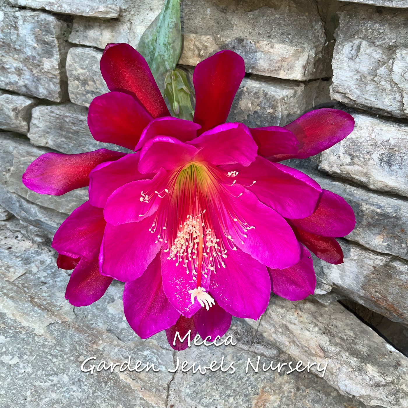 Description: 1995 FRE Red with fuchsia red to orange midstripe. Innermost petals solid fuchsia red. Flat thick growth. XL ‘Diamond Bill’ x ‘Herbert S. Irwin’.